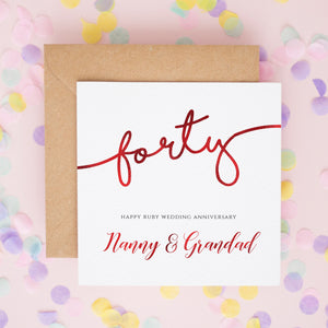 Personalised Ruby Wedding Anniversary Card for Parents or Grandparents – 40 Years