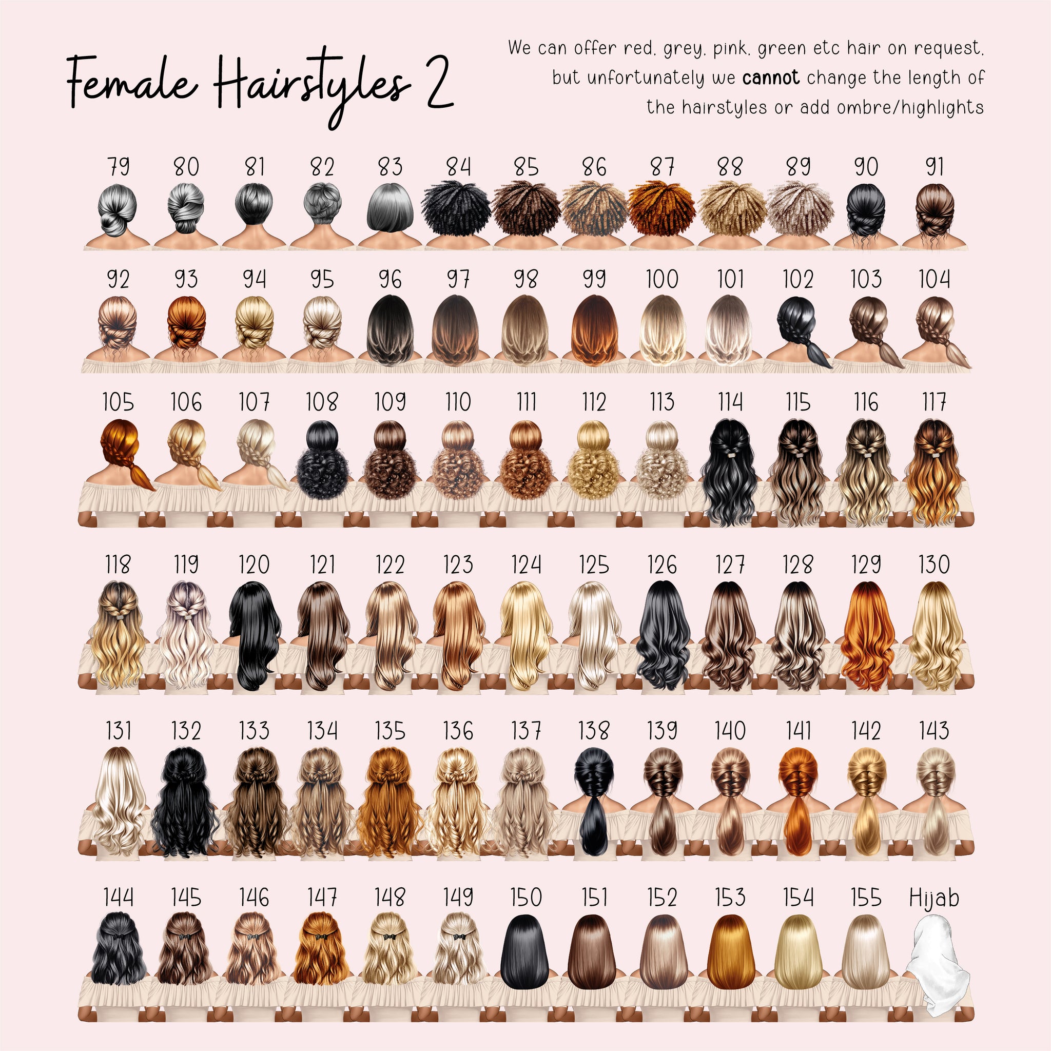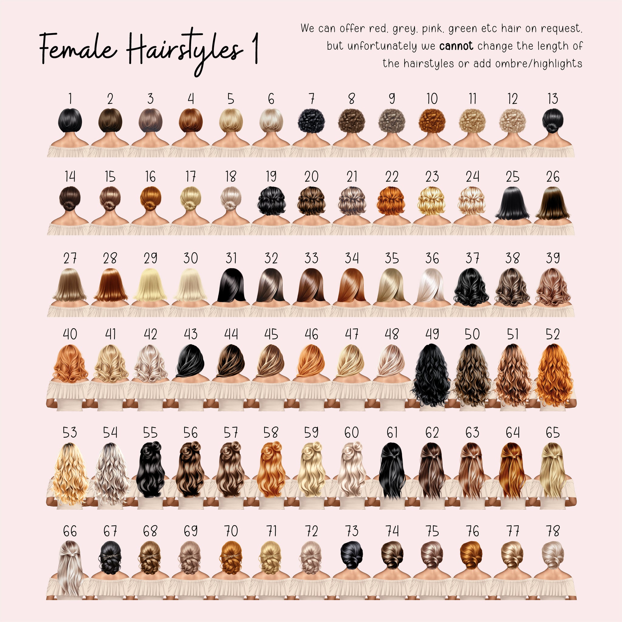 Please copy the paste the below design template into the notes box above, ensuring you complete all details in full including any personalised wording. You can view the hairstyles, skin tones and outfit options we have within the images on this page.